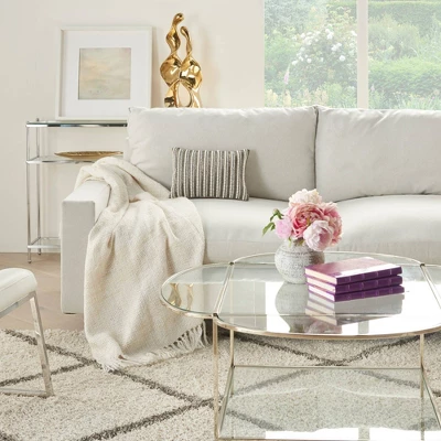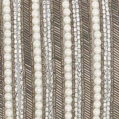 The glitz and glam of early 20s Hollywood is reimagined into this luxe Beaded Vertical Stripes Mina Victory lumbar pillow. Its handcrafted polyester cover is adorned with beads and faux pearls in pewter gray, ivory, and silver for a look that is as sophisticated as it is dramatic. This contemporary design is a glamorous addition to your chair or couch pillow mix. Includes a removable poly-fill insert and zipper closure. 10-inch x 14-inch size. Pattern appears on face only.