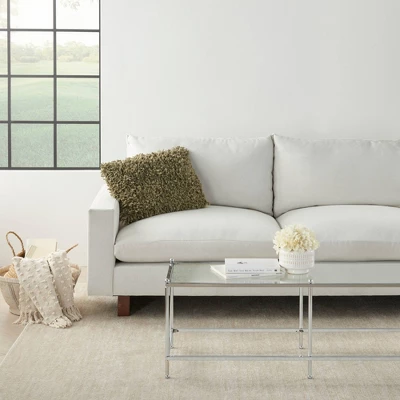 The Chindi Woven Shag throw pillow from Mina Victory Home Accents puts a funky spin on a classic pillow design. Its textured face is covered with strips of poly-cotton blended fabric that feels amazingly soft to the touch, making it a staple while you curl up with your favorite book or TV show. Lovingly handmade in sage green with a woven cotton back and polyester fill. 14” x 20” rectangle. Pattern appears on face only.