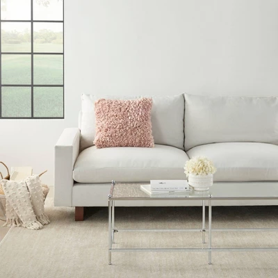 The Chindi Woven Shag throw pillow from Mina Victory Home Accents puts a funky spin on a classic pillow design. Its textured face is covered with strips of poly-cotton blended fabric that feels amazingly soft to the touch, making it a staple while you curl up with your favorite book or TV show. Lovingly handmade in blush pink with a woven cotton back and polyester fill. 17” square. Pattern appears on face only.