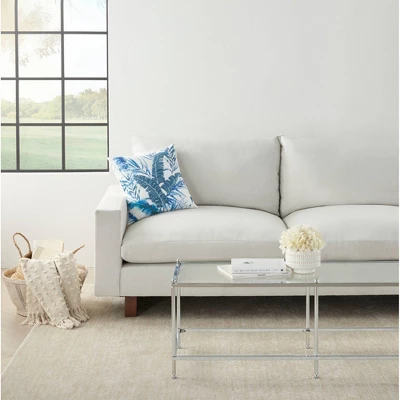 Ferns, fronds and feathery beachgrass make for a soft landing when you place this Mina Victory Home Accents throw pillow onto your sofa or chair. The classic tropical design adds texture and fresh tones of blue to your living room, bedroom or beach house décor. Handmade and towel-embroidered with soft terrycloth stitching. 18” polyester cover includes a polyester insert and zipper closure.