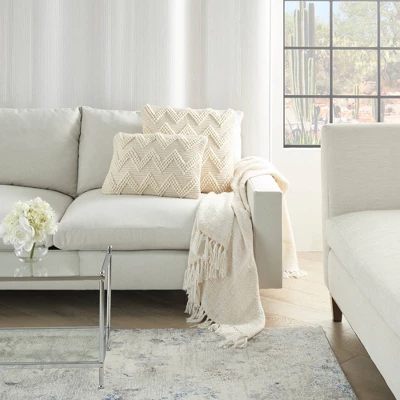 Lend a refreshing and modern vibe to your living room or bedroom with this stylish throw pillow by Mina Victory Home. In a delightful pop of pattern, its chunky chevron motif is woven in high-low style for a cozy, textural effect. Handcrafted with a durable cotton and wool face, cotton back, and plush, poly-fill insert. Zipper closure.