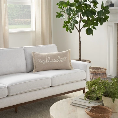 A sweet reminder of all to be thankful for, this neutral throw pillow from Mina Victory Home Accents brings heartfelt comfort to your favorite space. Featuring the word “blessed” in embroidered script, this contemporary pillow is an ideal accent for farmhouse décor. Handmade from cotton in a 12” x 21” rectangle with a hidden zipper closure.