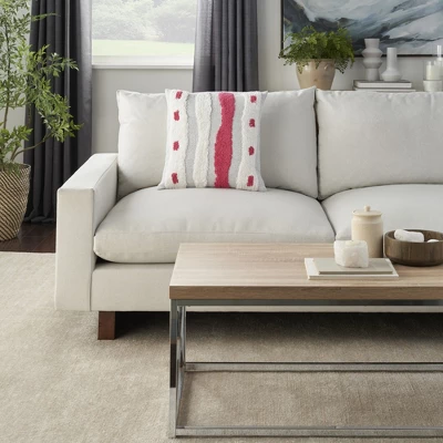 Add a playful and cozy decorative accent to your sofa, bed, or favorite chair with this richly textured and super-soft casual throw pillow from Mina Victory Home Accents. Featuring a whimsical stripe and dash design in bursts of bright color alongside gray and white accents, this poly-cotton throw pillow is handmade using comfortable, easy-clean materials. Available in an array of colors, this 18” square throw pillow Includes a polyester insert and zipper closure.