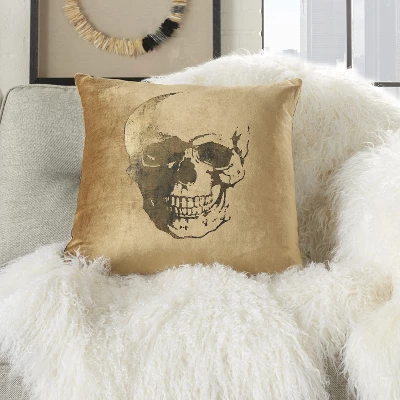 Anything but spooky, this metallic skull throw pillow from Mina Victory Home Accents adds a touch of goth glam to your space. The front cover features a metallic faded skull printed onto velvety soft cotton fabric. Toss onto your sofa or chair for a chic finish to your Halloween décor or use year-round! Handmade 20” velvet pillow includes a removable polyester insert with zipper closure.