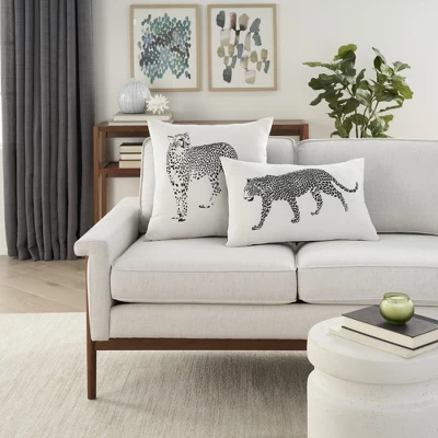 - Leopard outdoor lumbar pillow reverses to a solid color back
