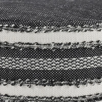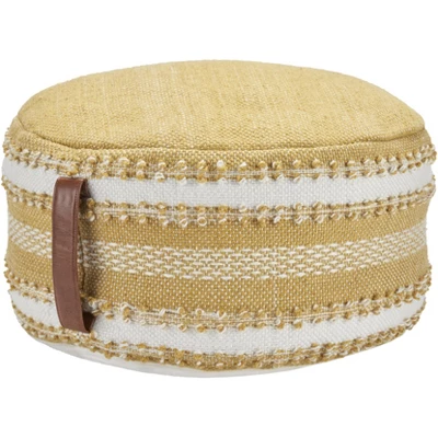 If you’re looking for a quick and easy style update for your outdoor seating area, or a cozy place to prop your feet while chatting with friends, this casual outdoor pouf from Mina Victory Home Accents offers the best of both. The handmade cover features a woven stripe-and-knot geometric design that adds a fun pop of texture, in a sturdy polyester material designed to withstand the elements. 20” x 20” x 12” pouf includes a side strap for convenient carrying from room to room and is filled with polystyrene beads.