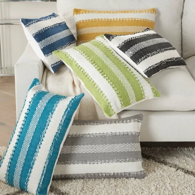 Woven Striped And Dots Indoor/Outdoor Throw Pillow – Mina Victory